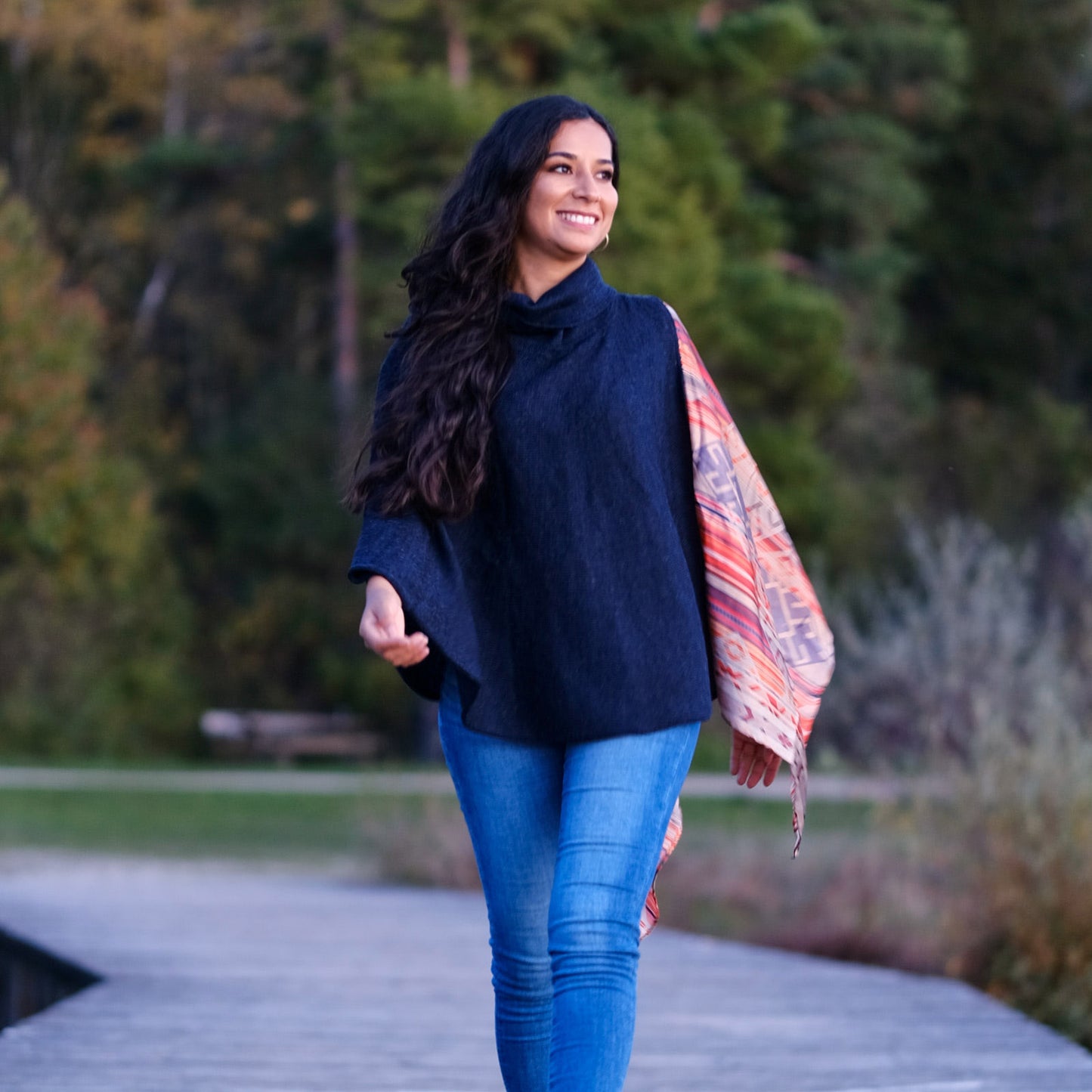 This beautiful alpaca wool poncho of high quality , created by Asarti from an atypical color combination, is a stylish and elegant garment that can accompany your outfit and keep you warm in the cold season.